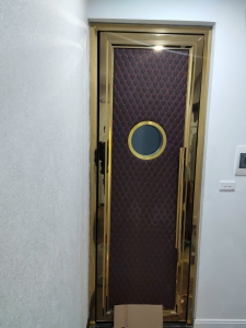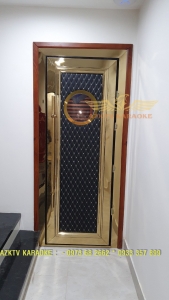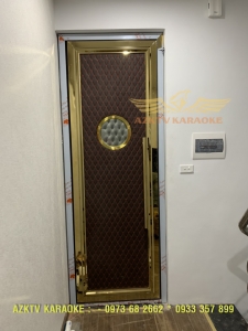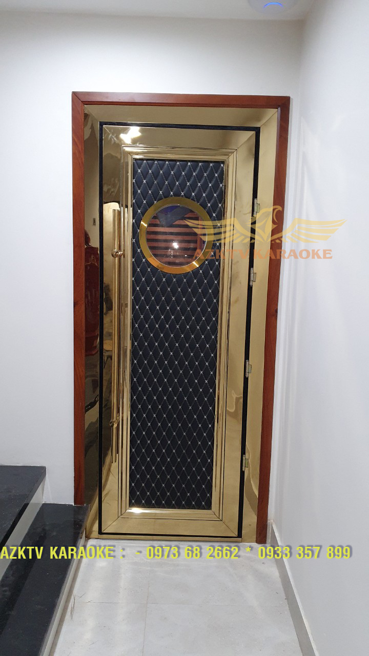 Mẫu cửa cách âm phòng hát karaoke hiện đại sang trọng cao cấp với chất liệu INOX kết hợp với mẫu simili 3D tăng tính thẩm mỹ bộ cửa.